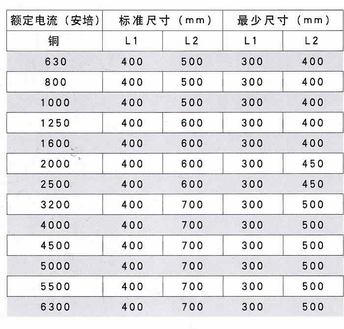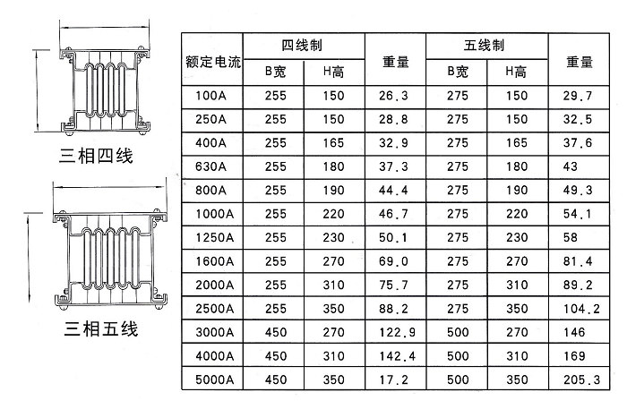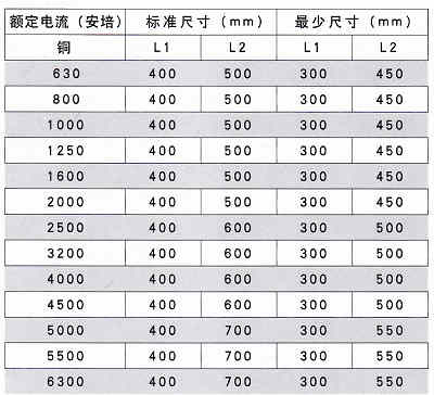 母线槽尺寸的说明: 母线槽由直线段及弯头组成,每种电流规格尺寸不尽相同,密集型和空气型母线槽的尺寸也不一样,下面给出各种尺寸表,供参考,注意,下面的尺寸表为密集型母线槽.